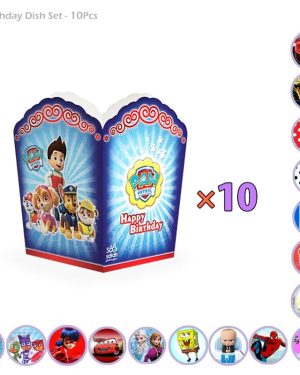 ظرف پاپ کورن تم تولد – 10 تکه ست ظرف پاپ کورن تم تولد 10 تکه مناسب برای جشن تولد فرزندان عزیز شماست. ابعاد هر ظرف 6×8 با ارتفاع 11 سانتی…