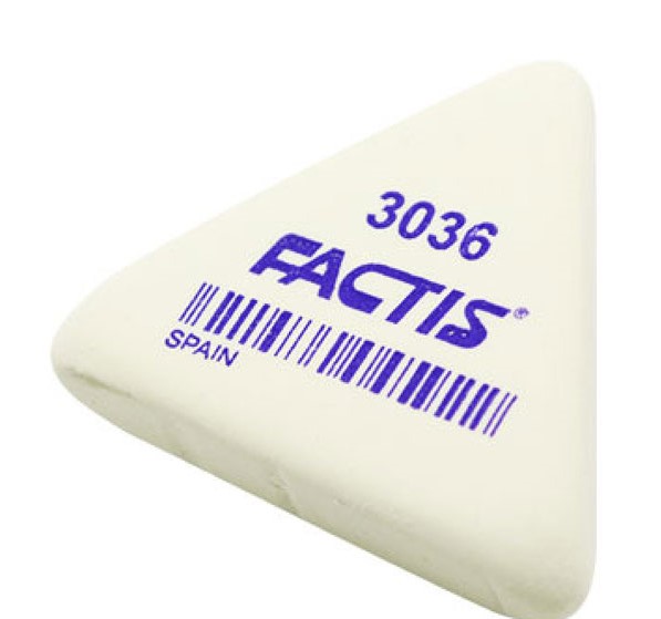 مثلث نزدیک ترین شکل به ساختار دست انسان است، به همین دلیل است که استفاده از نوشتافزارهای مثلث شکلی مانند پاککن «فکتیس» (Factis) دست را خسته نمیکند. این پاککن بهخوبی اشتباهات نوشتاری شما را از بین برده و اطراف محل کار شما را کثیف نمیکند. پاککن فکتیس به شکل یک مثلث متساویالاضلاع است. این پاککن بهراحتی در بین انگشتان شما قرار گرفته و به همین دلیل در استفادهی طولانیمدت آسیبی به دست شما نمیزند. با این محصول هیچ اثری از اشتباه نوشتاری شما به جا نخواهد ماند تا شما بتوانید درست از همان جایی که اشتباه کردید، نوشتن را دوباره آغاز کنید. میزان پرزی که در اثر کار با این پاککن تولید میشود بسیار کم است. این امر از کثیف شدن دفتر و کتاب یا محیطی که در آن مشغول نوشتن هستید جلوگیری میکند. لذت نوشتن با مداد یا مداد نوکی زمانی دو برابر میشود که یک پاککن خوب هم برای پاک کردن اشتباهاتتان در اختیار داشته باشید. پاککن فکتیس به دلیل قدرت پاککنندگی بالا، شکل مثلثی و تولید حداقل پرز برای کسانی که در طول روز با نوشتن با مداد یا مداد نوکی سروکار دارند، یک انتخاب بسیار مناسب است.